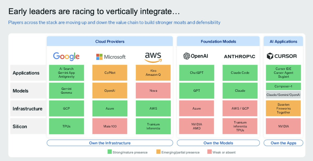 (Source: Lin on X: “Google is the only company that owns the entire AI stack)